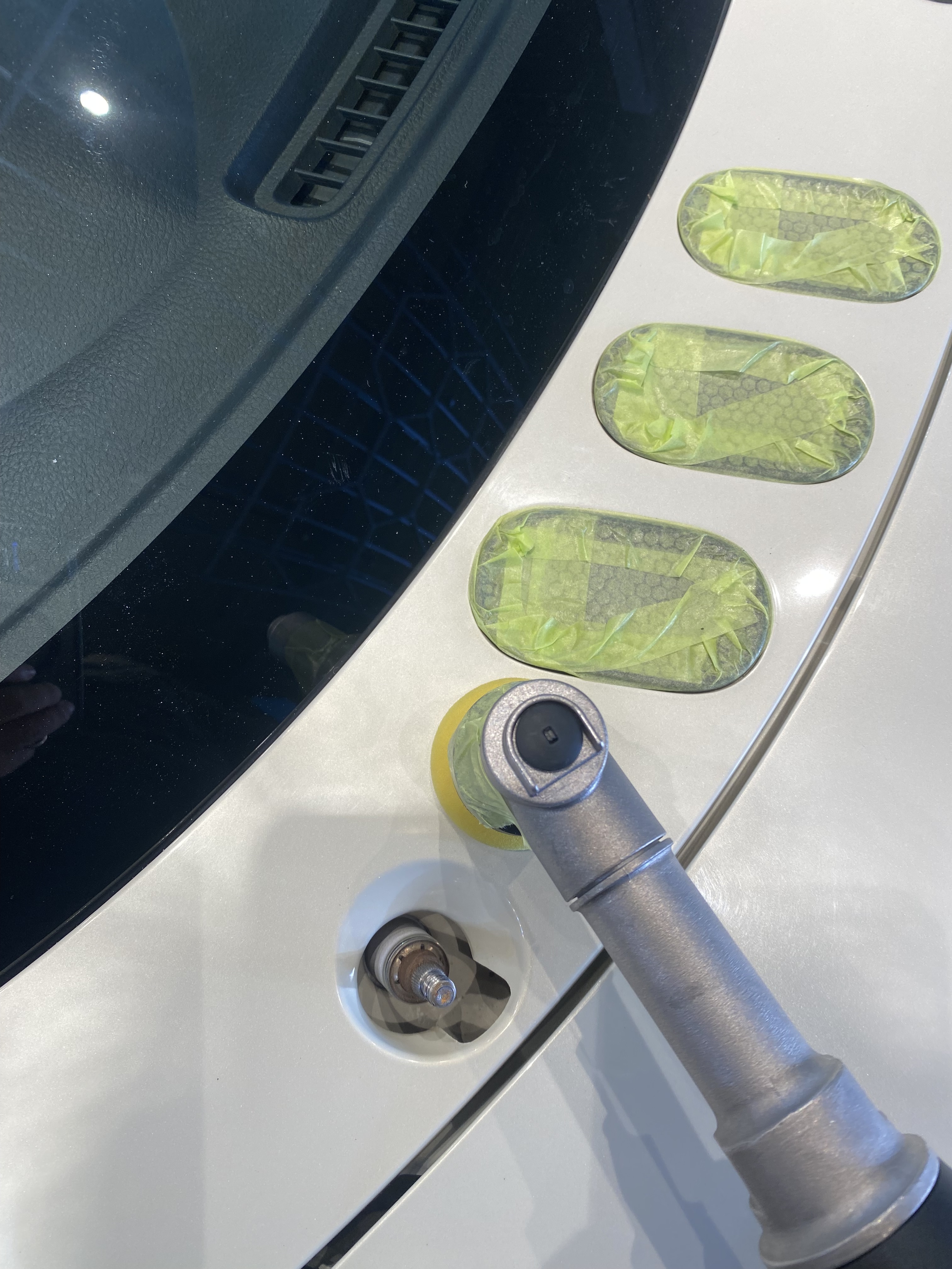 研磨前の下地処理を終わらせ 窓ガラスのウロコと油膜を除去